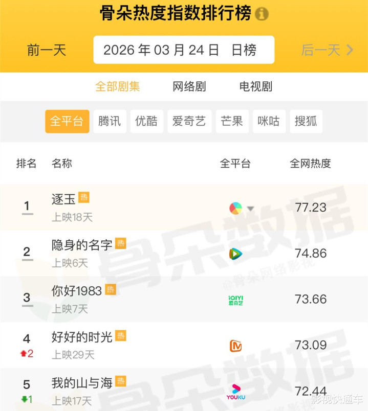 以上全网最新电视剧热度排名榜TOP5银河国际游戏平台app,各人正在追哪一部呢?