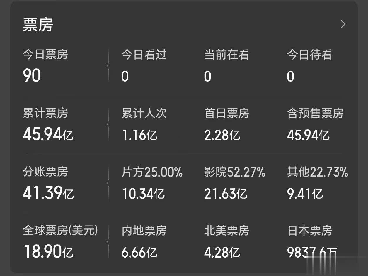 在北好意思原土,《放纵动物城2》的票房发达远不足内地,只收成了4.28亿好意思元(不到30亿东说念主民币)。至于其他市集,则皆没能达到1亿好意思元。但加在一说念,《放纵动物城2》的各人累计总票房则接近19亿好意思元,换算成东说念主民币越过了130亿,片方能从等分到大致42.9亿东说念主民币。