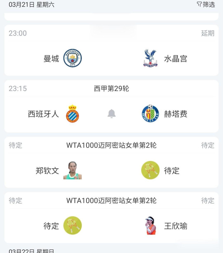 由于迈阿密大雨18日比赛一谈取消,改为19日进行,是以原定郑钦文和王欣瑜20日登场,改为21日登场。
