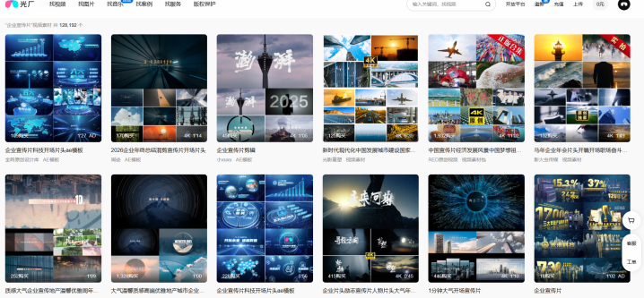 品牌先容: 光厂是国内视频素材平台,官网炫耀已运营 14 年,领有 129,696 名供稿东谈主,本周上架 113,778 件视频素材,并掩饰视频、图片、音乐、案例和干事等内容。平台首页还明确提供“科技、标题、舆图、logo、数据、粒子、字幕条”等企业宣传片高频要害词,说明它对国内企业宣传片的场景适配度很高。
