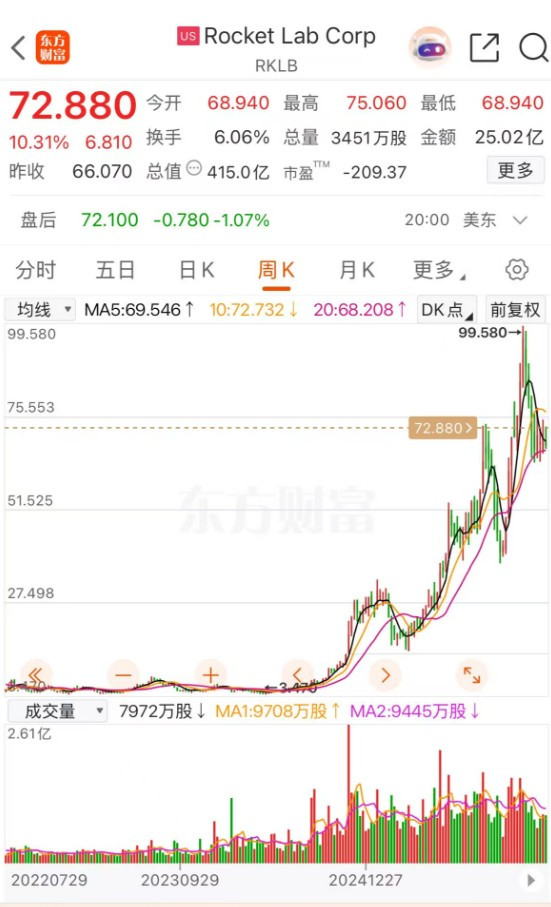 话又说总结,Rocket Lab的信得过业务天然还算可以,2025年营收还是6亿好意思元,远超3D打印龙头厂商Statasys的5.5亿好意思元和DDD的3.8亿好意思元,而且照旧高速增长中,赔本2亿好意思元;但由于最近SpaceX听说要IPO,估值上万亿好意思元,Rocket Lab也被这个生意航天的大风口给吹起来了,刻下的股价还是挺高了。
