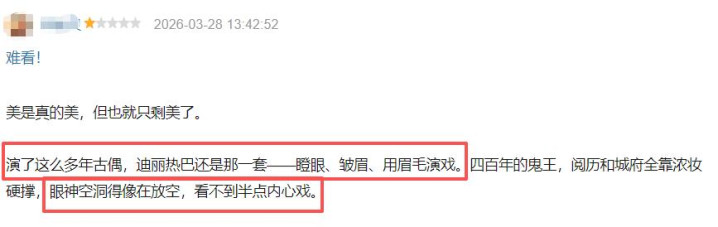 其实迪丽热巴的颜值照实能打,红衣鹤发的造型也惊艳,可演技永恒停留在名义,莫得真确走进变装的内心。