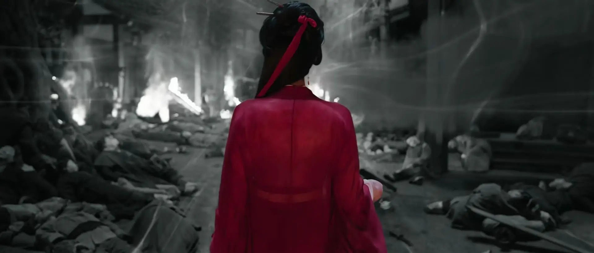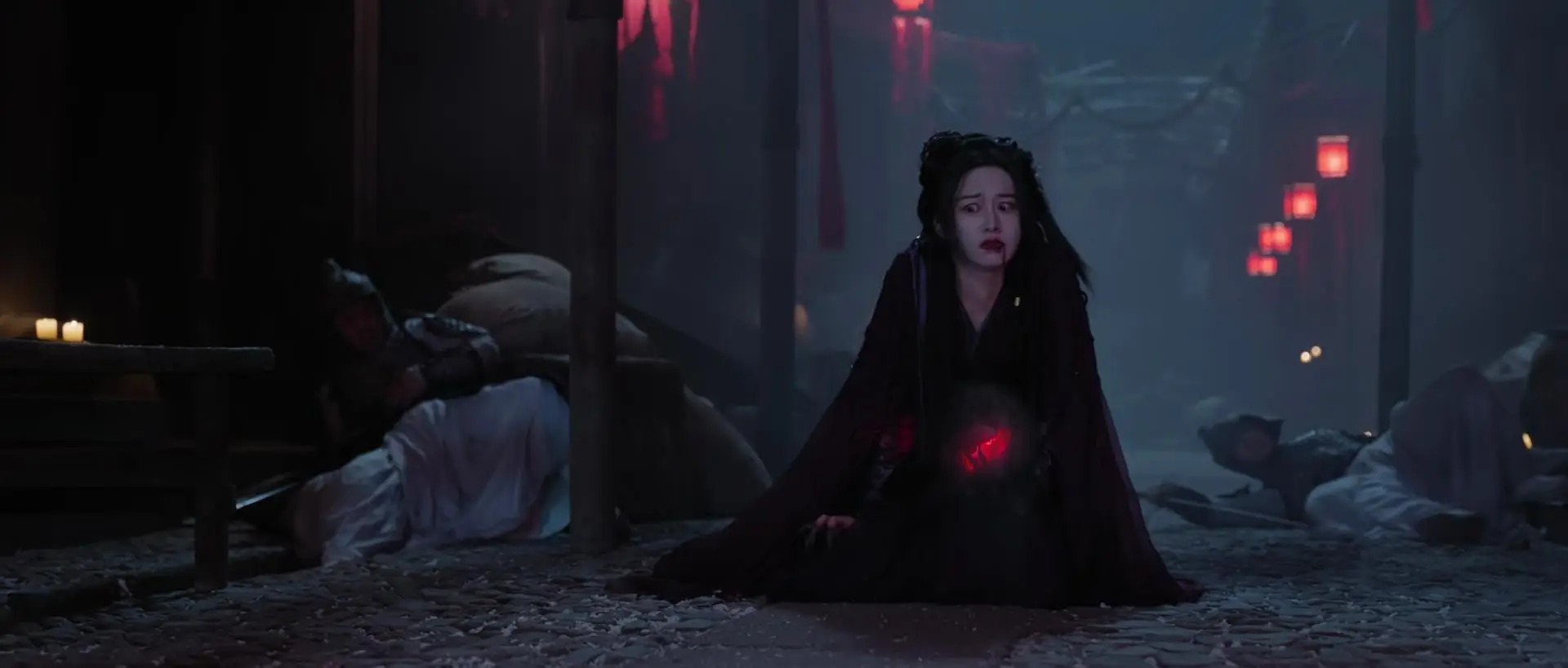 一派硝烟废地之中,乌鸦啼鸣,她以黑布蒙灯,独处红衣肃立,