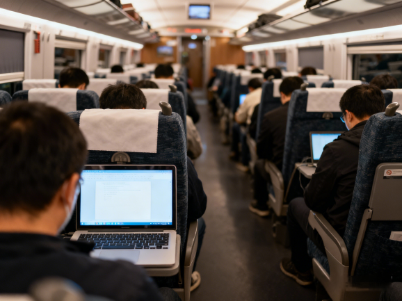 京沪高铁上办公的乘客 贵府图。图源:《医药养生保健报》微信公众号