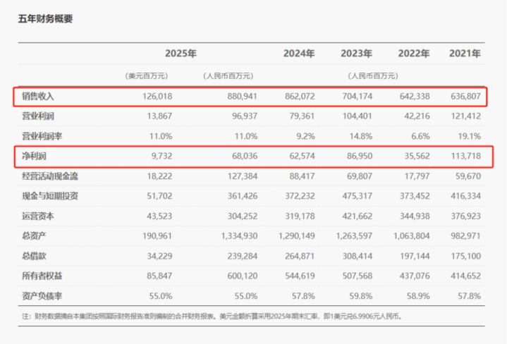 敷陈主见,2025年,华为营收、净利润均保捏矜重增长,全年达成销售收入8809亿元(东说念主民币,以下同),净利润680亿元。跟2024年的8621亿元比较,2025年的销售收入增长了2.18%,为华为公司历史上第二高。2020年,华为营收达8914亿元,为历史最高。
