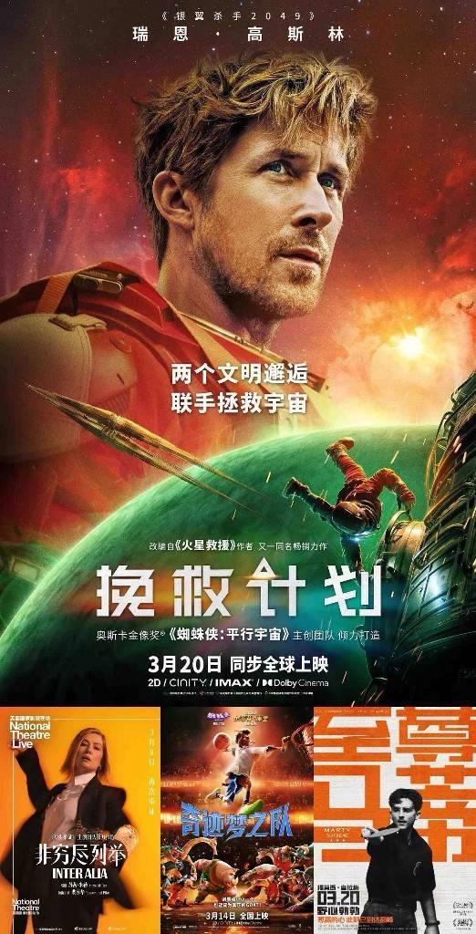 入口片雷同亮眼:3月20日与北好意思同步上映的科幻片《挽救揣测》、设定新颖的动画《河狸变身揣测》,以及《非穷尽列举》《至尊马蒂》《遗迹梦之队》等皆得益不少饶恕。春节档热点《疾驰东谈主生3》《镖东谈主:风起大漠》《惊蛰无声》《熊出没·年年有熊》等也保持沉静排片,没看的小伙伴不错持紧补票。