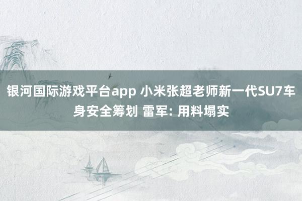 [CNMO科技音书]3月31日,小米创办东谈主雷军发布新一代小米SU7拆解视频。视频中,SU7系列车型工程总监张超深化老......