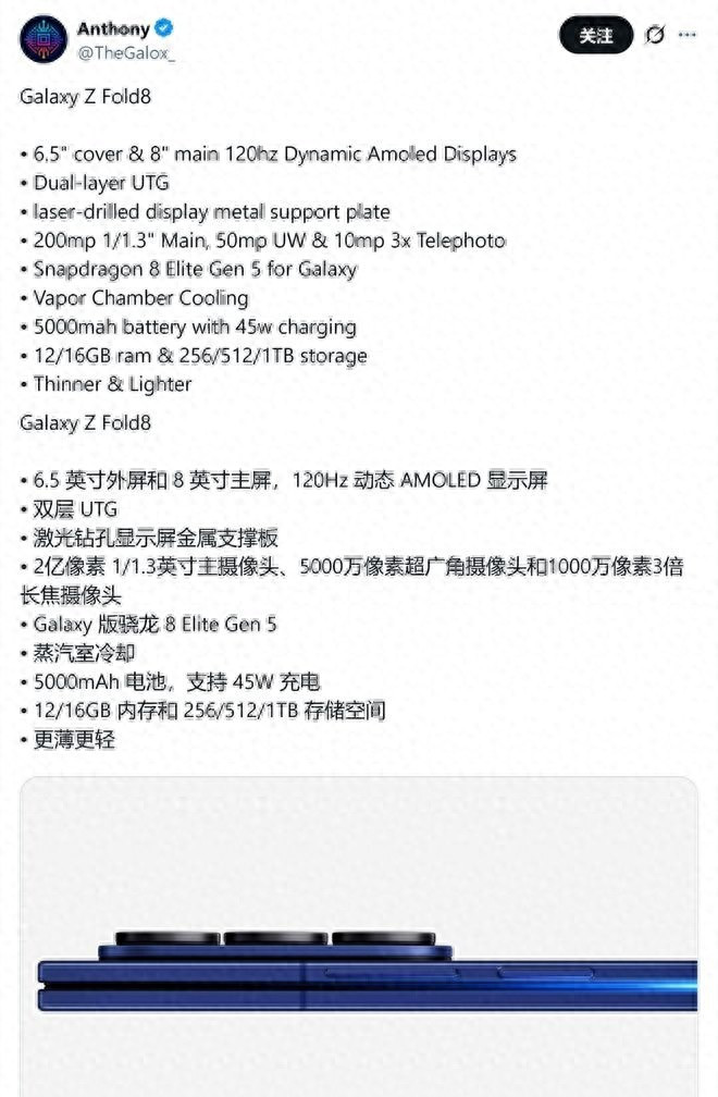 电板5000mAh,45W快充。对,即是阿谁2026年还在用45W的三星。我掐表算过:Fold7充到100%要67分钟,试验可用时刻也就一整天露面。刻下连中端机齐上67W了,折叠屏反而倒退?不是不可结实堆电板难,但既然敢上骁龙8至尊版,充电战略真不该还按2022年的节律走。
