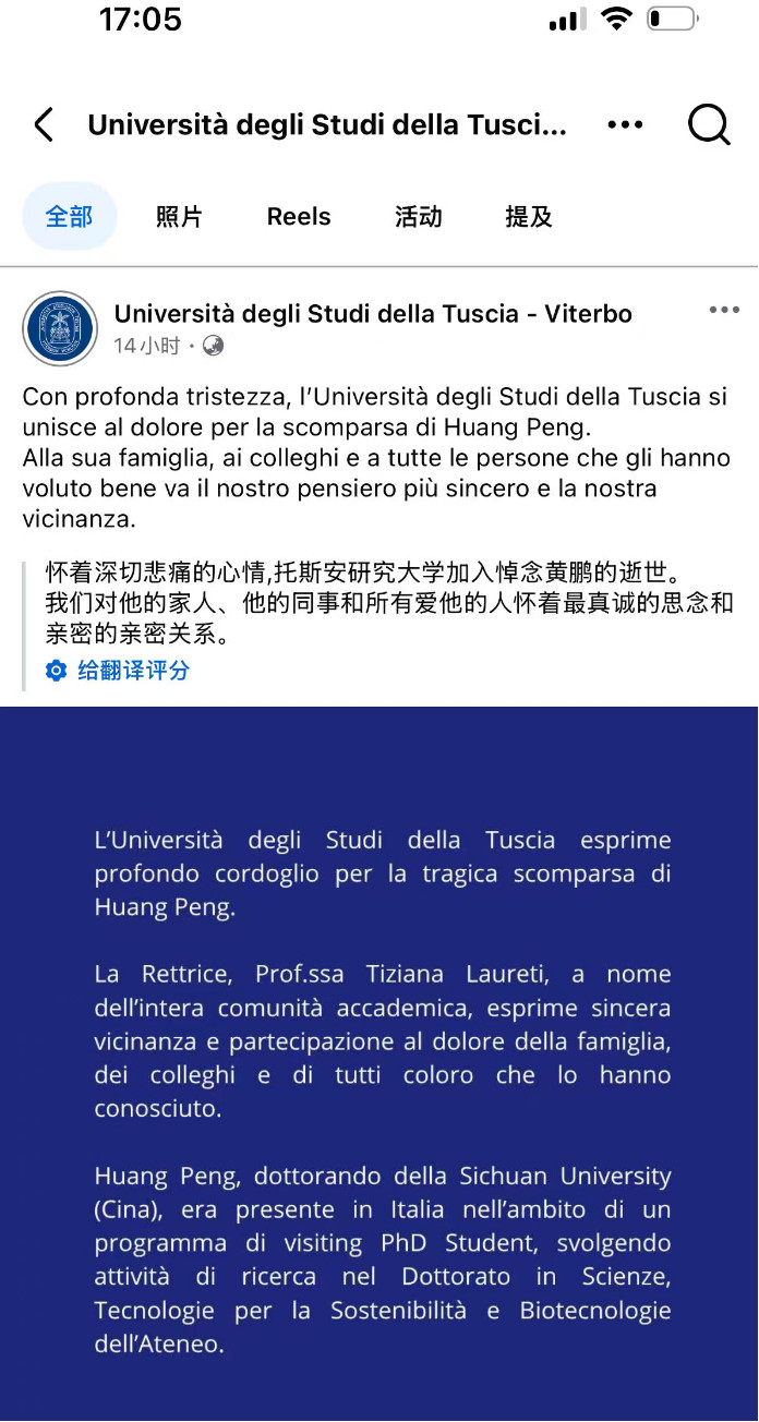 3月31日,黄某访学的意大利图西亚大学发文称,怀着无比千里痛的心思,漫骂黄某的灭一火。