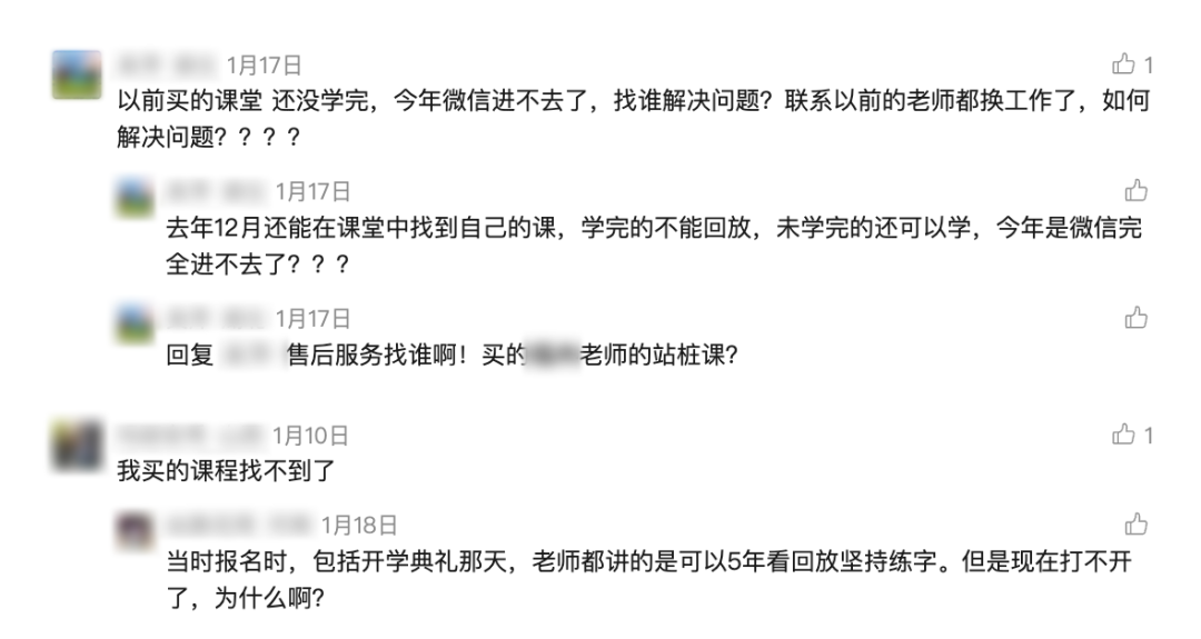 千尺学堂公众号著述下消费者的留言。