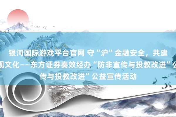 近日,由上海市证券同行公会主办、东方证券经办的"守沪金融安全·防非宣传与投教改进"公益宣传活动在上海豫园商城奏效举办。 ......