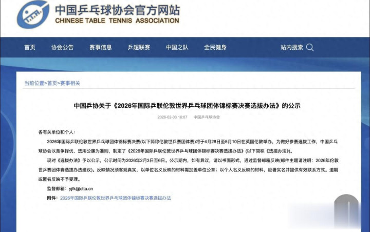 把柄中国乒协早在2月公布的采选端正,伦敦世乒赛的参赛经验主要通过四条通说念产生:2025年多哈世乒赛单打冠军、2025年全运会单打冠军、2026年2月9日世界名次最高的两位选手,以及狂暴的队内采选赛冠军。