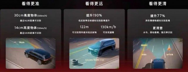 两款新车最大的亮点便是搭载各人量产最高规格 896 线双光路图像级激光雷达,全车共配备4 颗激光雷达 + 34 可和会感知传感器,撑捏 L3 级有要求自动驾驶架构。这套感知系统可在 120km/h 车速下,最远162 米识别 30cm 高度阻挠物,120 米识别 14cm 极小缠绵,对水马、倒地阻挠物、夜间低反射物体的识别才能大幅晋升,恶劣天气下的感知踏实性相通处于行业第一梯队。