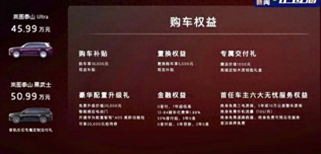 日前,电车之家获悉岚图泰山 Ultra 运行世界量产委用,同期个性化定制版块 —— 泰山黑武士版开启限量大定,两款车型官方引导价分手为45.99 万元与50.99 万元。